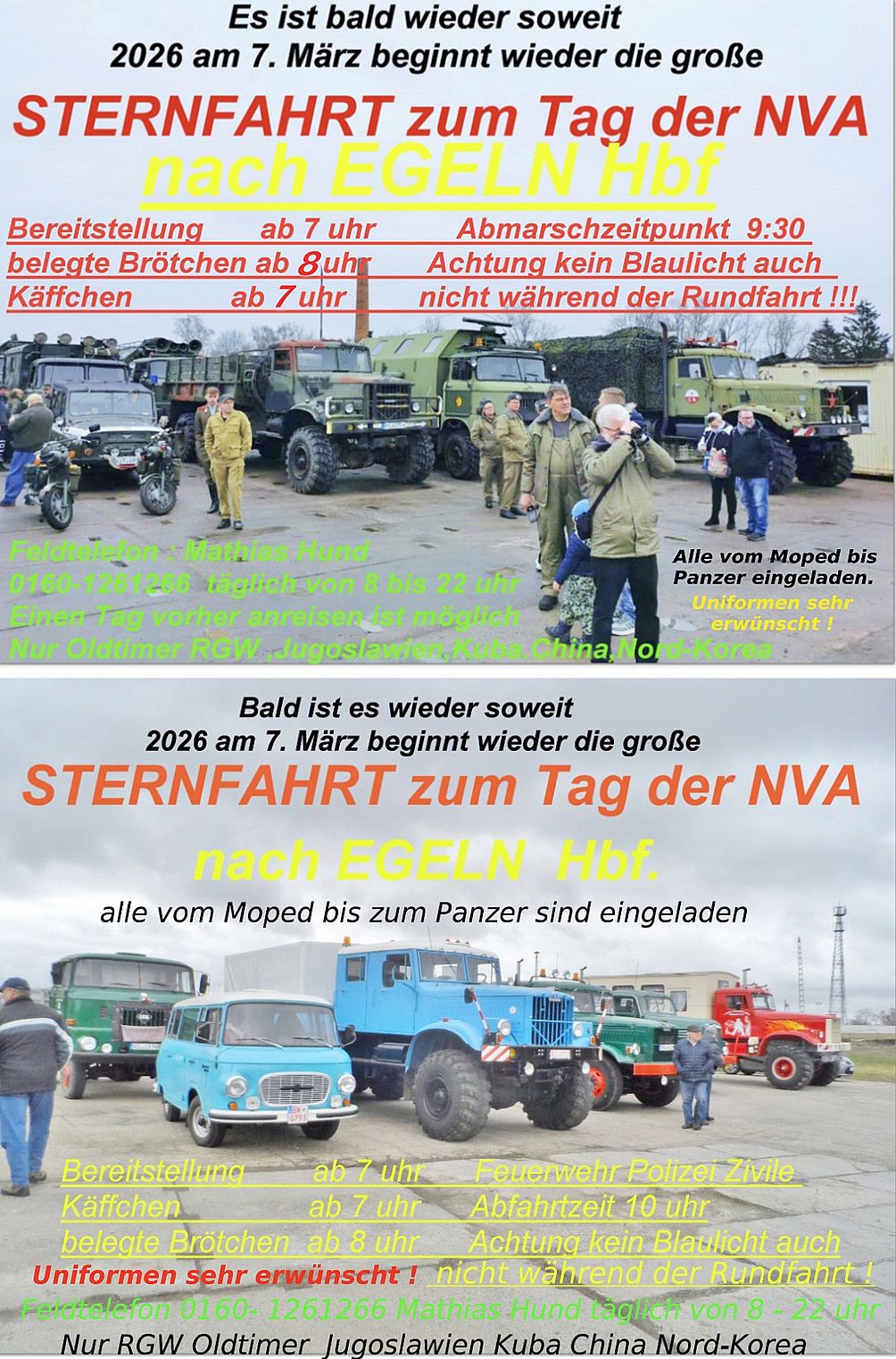 Ausfahrt zum Tag der NVA 2026 39435 Egeln, Hauptbahnhof |